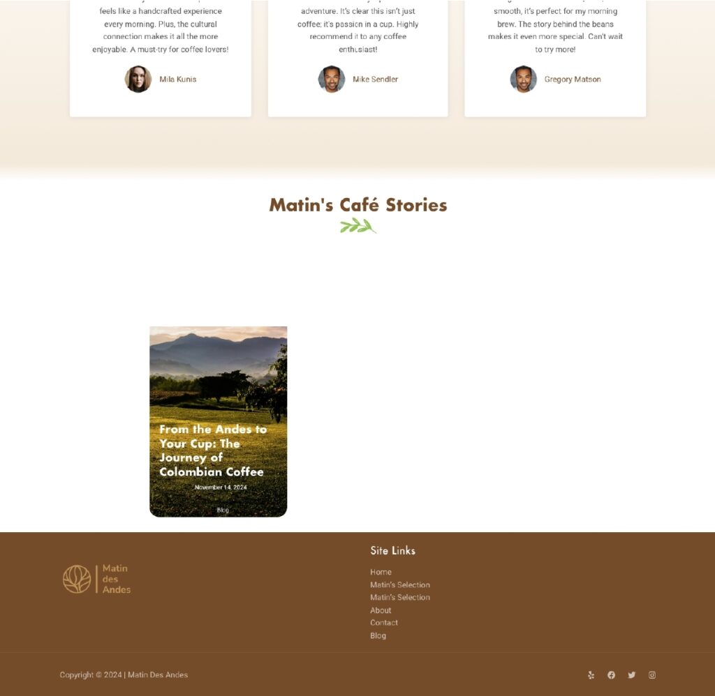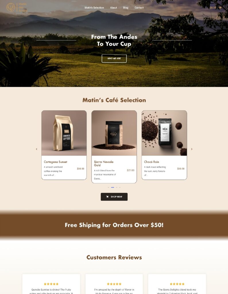 Development and Design for an E-Commerce coffee website, it was functional with a Product, Payments, Contact and Blog sections. All the branding and Web Desgign was developed by me.